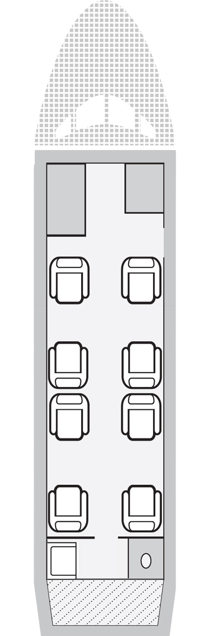 The 300 seats up to 8 adults, and is outfitted with a full galley, flight phone, WiFi, and an oven/microwave. This aircraft provides top-notch travel accommodations for the most discerning passenger.