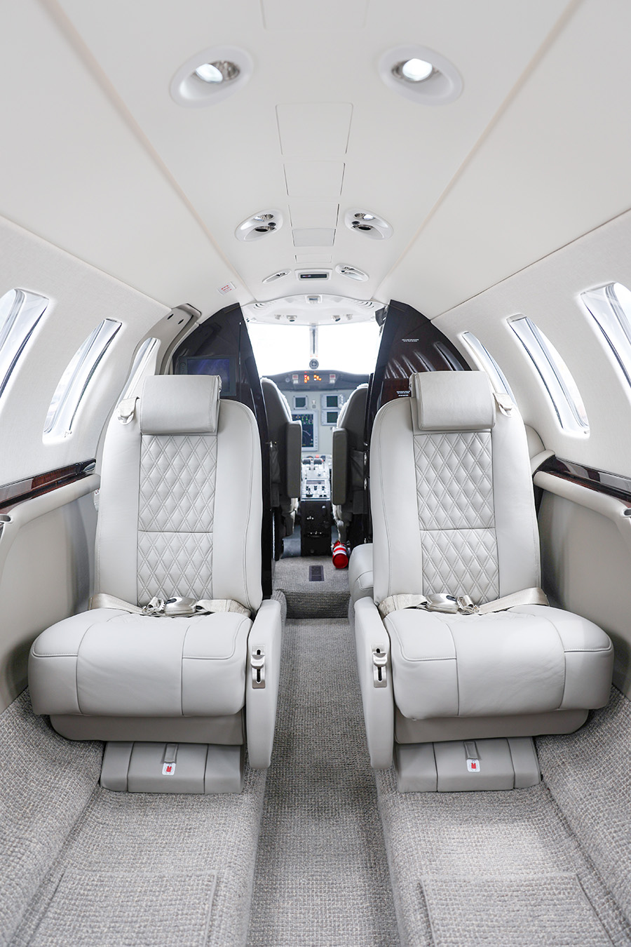 This newly refurbished light jet offers an efficient and dependable aircraft option, while providing comfort and luxury. Its long cabin provides plenty of leg room and first class aesthetics. Luxury finishes will provide you with a relaxing environment during your flight. The quiet cabin will allow you to ride in peace, while having access to top of the line in flight technology. One of only two light jets based in and equipped for night and all weather ops into and out of Aspen, this aircraft is perfect for short runway utilization, opening up more airport options, ultimately getting you closer to your desired destination.