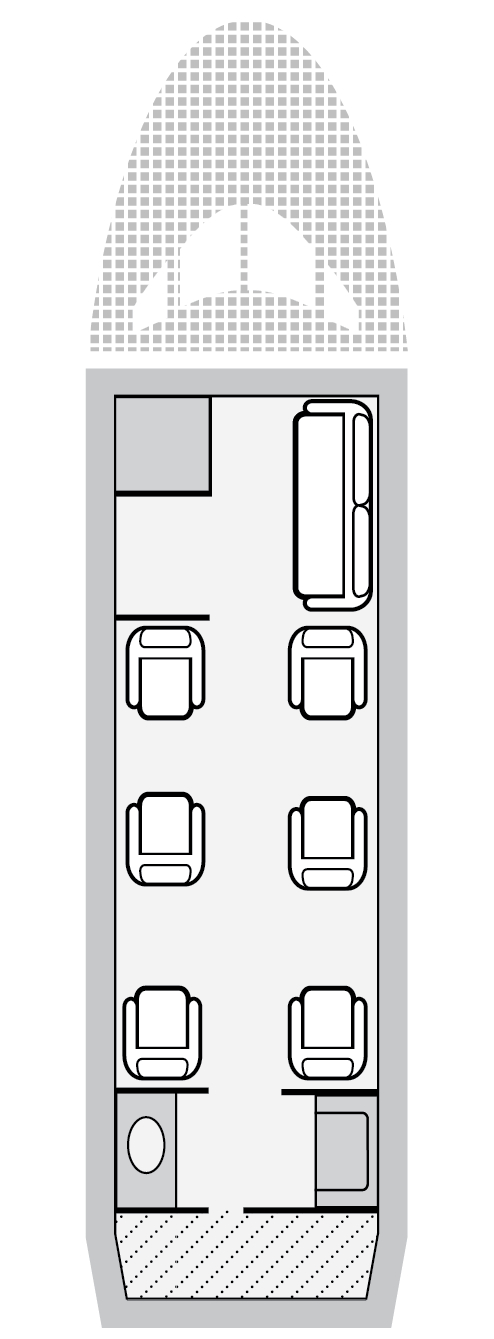 The spacious cabin offers comfortable room for up to 8 passengers and allows those inside to stand and move about the cabin with ease. High-quality leather seats are extra wide with full reclining capabilities for optimal comfort.